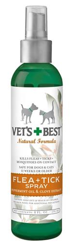 Vets Best Flea and Tick Spray (8 oz) uses a unique blend of peppermint oil and eugenol (from clove plants) to kill fleas, flea eggs, and ticks by contact. Also repels mosquitoes! Our formulas are independently tested and proven effective at killing and repelling pests like fleas, ticks, and mosquitoes. For use on dogs and puppies 12 weeks or older. The non-staining plant-based flea and tick killing formula is also great for home surfaces like furniture, bedding, carpets, flooring, and curtains anywhere these pests may hide! For over 30 years, Vets Best has blended plant-based that work together to comfort and protect your pet.